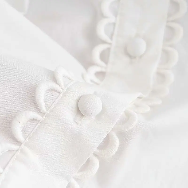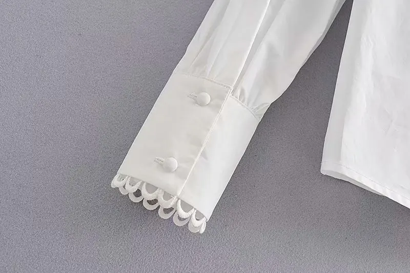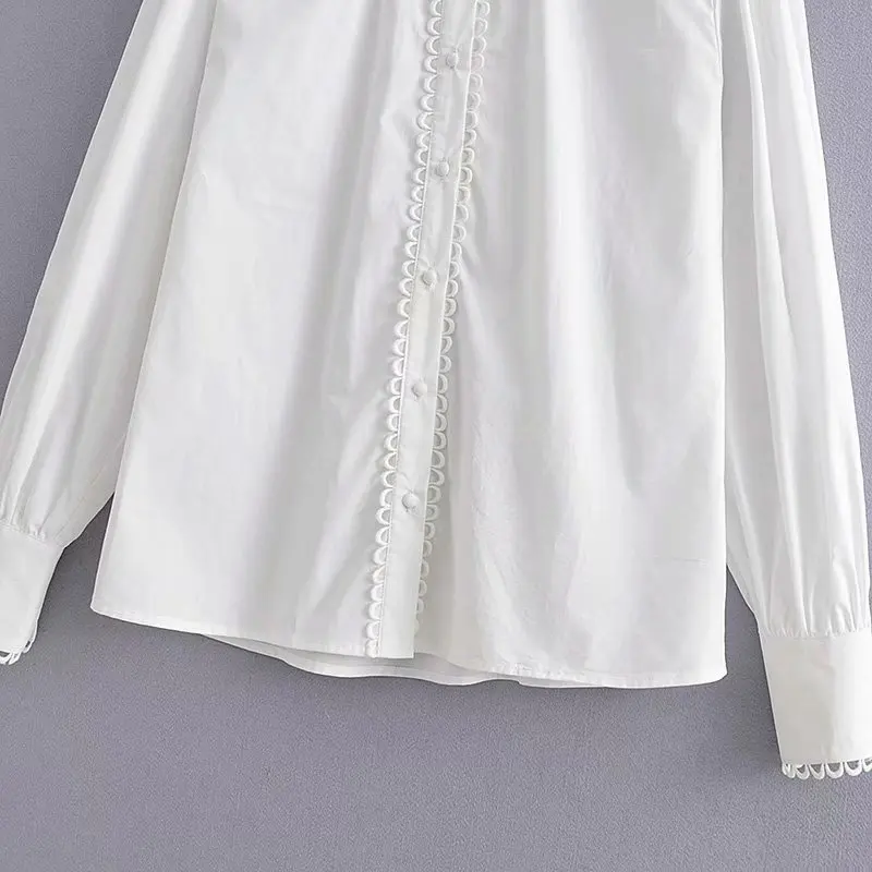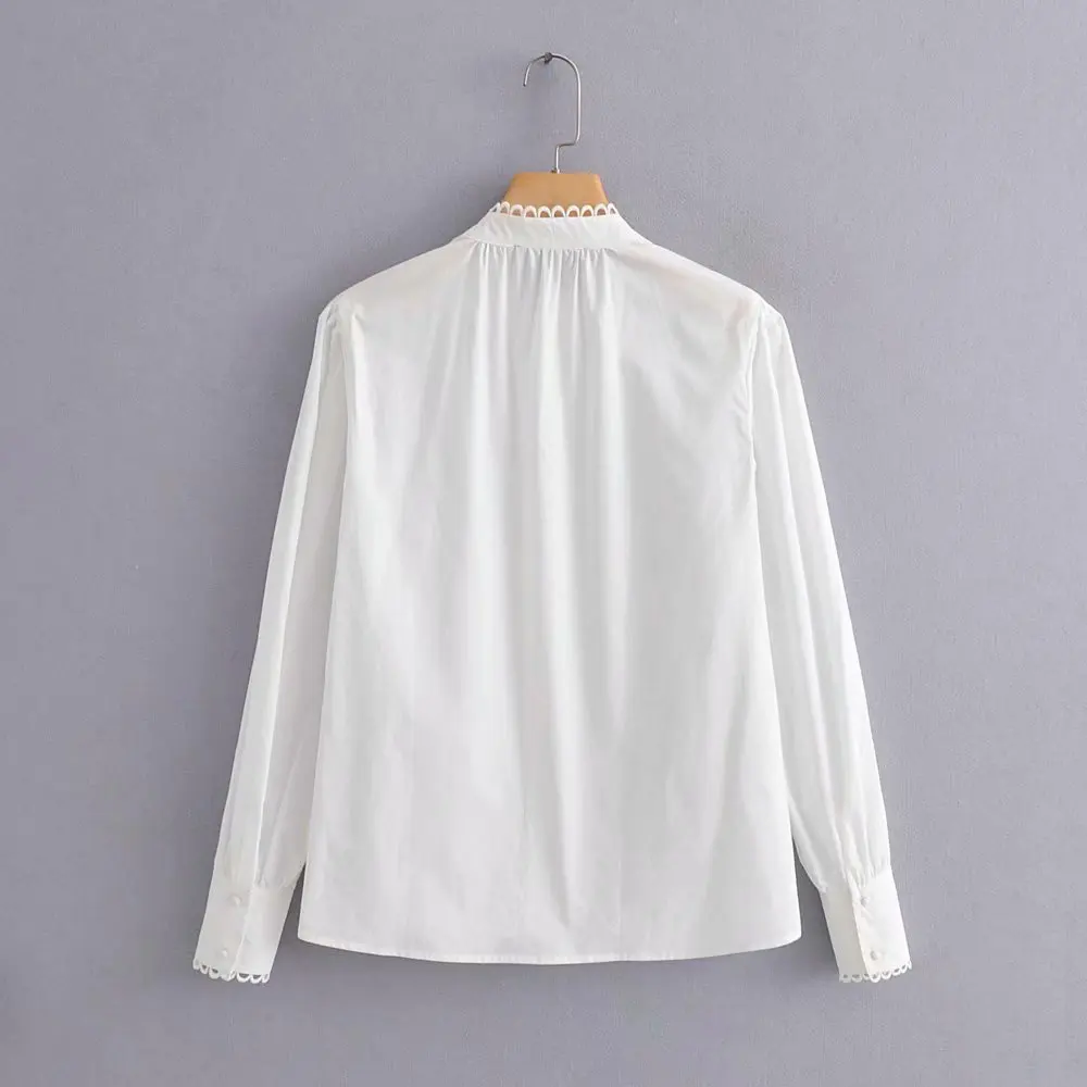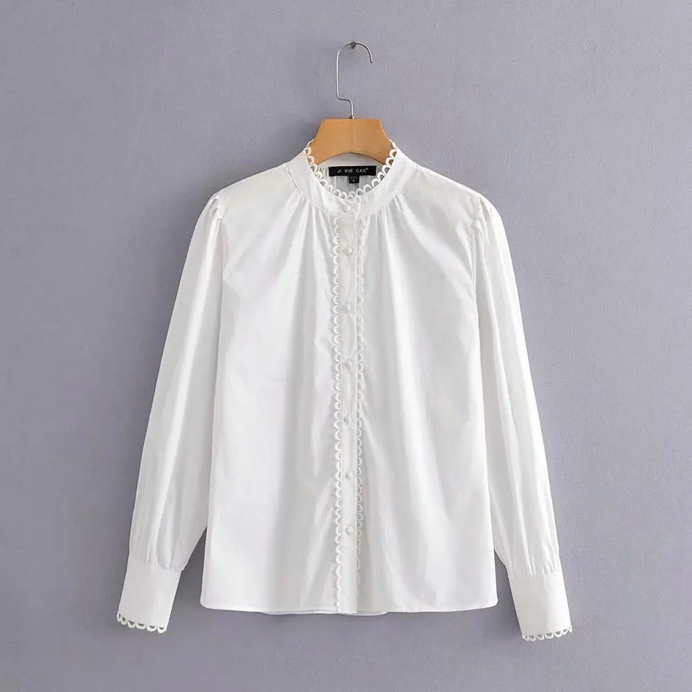New 2019 women elegant lace wave edge decprate white blouse shirts women stand collar office blusas chi