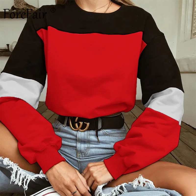 Buy Forefair Color Patchwork Crop Sweatshirt Women Autumn 2019 Casual Pullovers Long Sleeve O Neck Wais