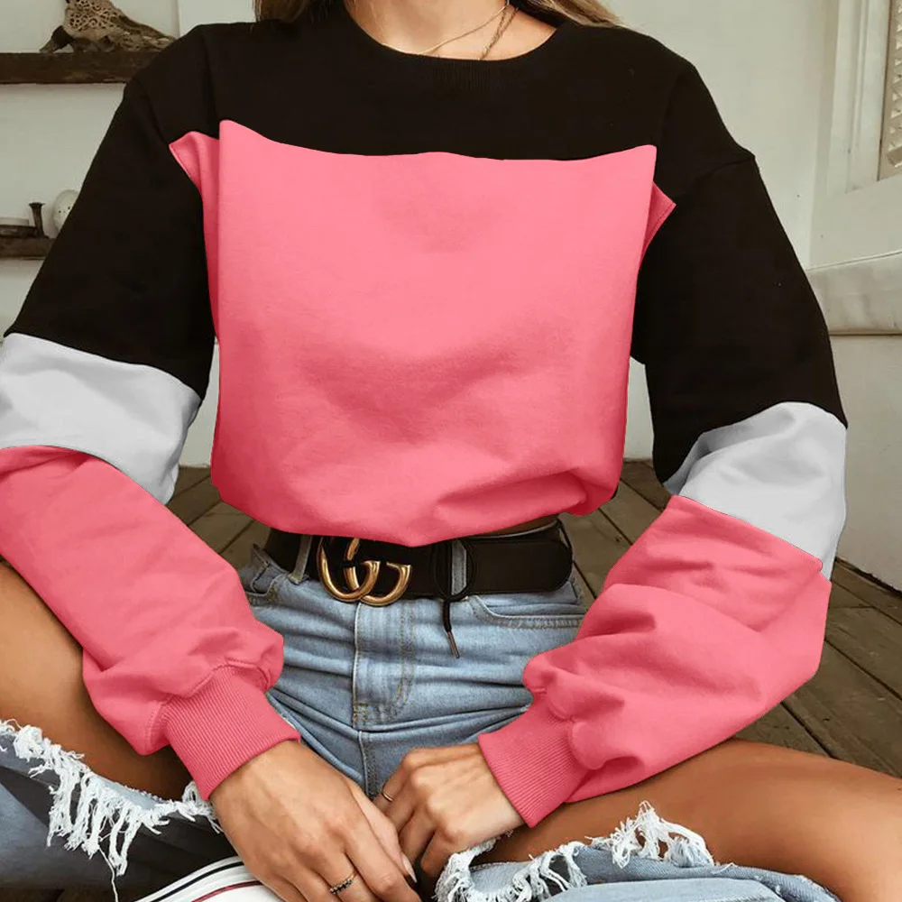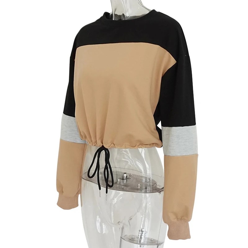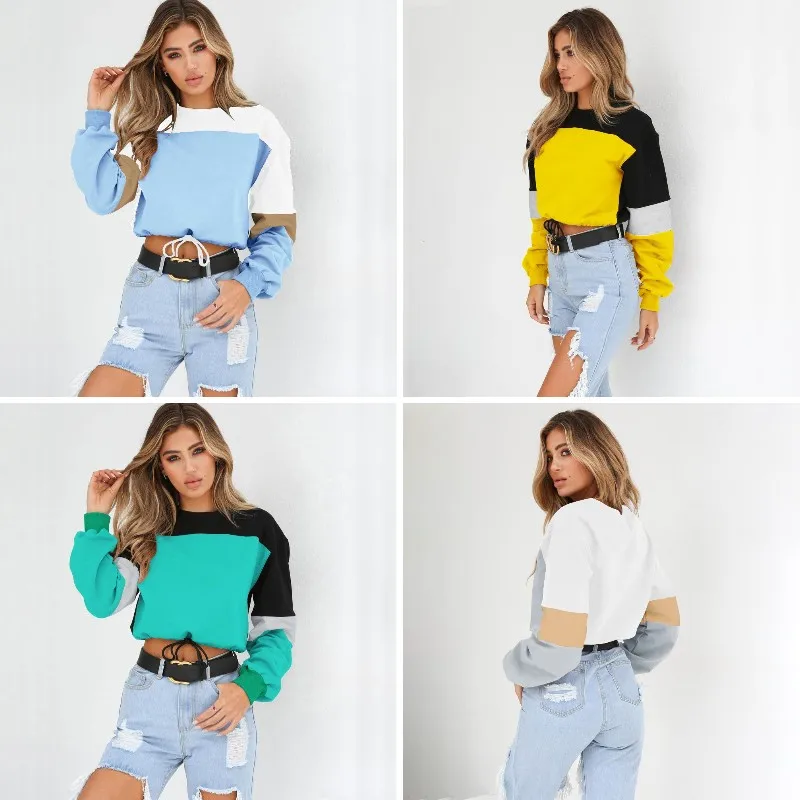 Promo Forefair Color Patchwork Crop Sweatshirt Women Autumn 2019 Casual Pullovers Long Sleeve O Neck Wais