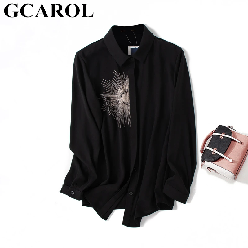 Promo GCAROL New Women Embroidery Blouse 30% Cotton Blends Elegant OL Shirt Mid Length High Quality Class