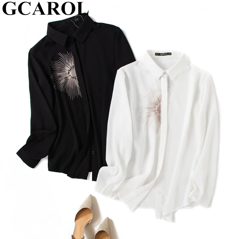 Buy GCAROL New Women Embroidery Blouse 30% Cotton Blends Elegant OL Shirt Mid Length High Quality Class